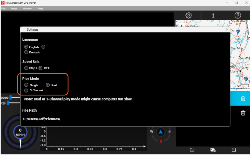 🔶 Open the ROVE GPS Player, and click on the gear icon (settings) and choose the play mode for multiple video playback.