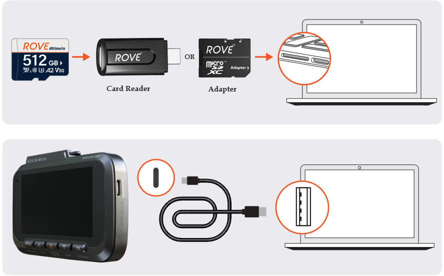 🔶Remove the memory card from your dashcam or connect your dashcam directly to your PC/Mac via USB.